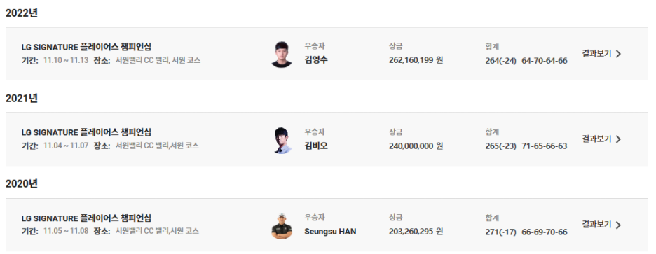 LG SIGNATURE 플레이어스 챔피언십은 2020년에 시작되어 올해로 4회째를 맞는 대회입니다.