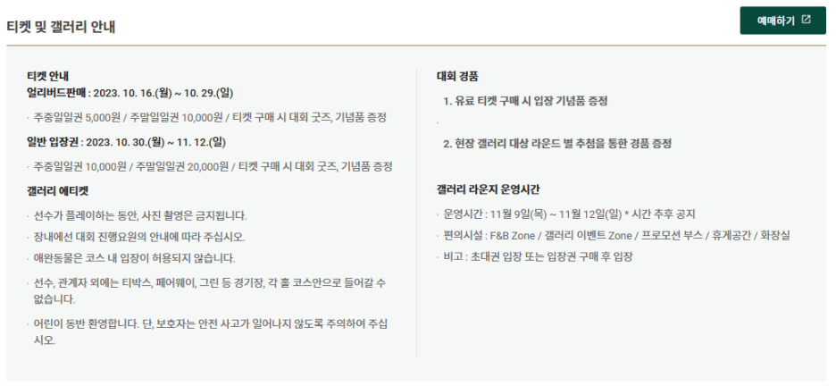 2023 골프존 도레이 오픈 KPGA 골프 대회 in 골프존카운티 선산 CC, 주차, 티켓 구매