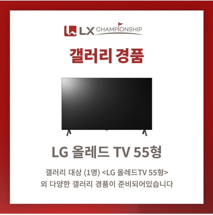 갤러리 경품으로는 LG 올레드 TV 55인치가 1위 상품입니다. 올레드라니 좋네요.