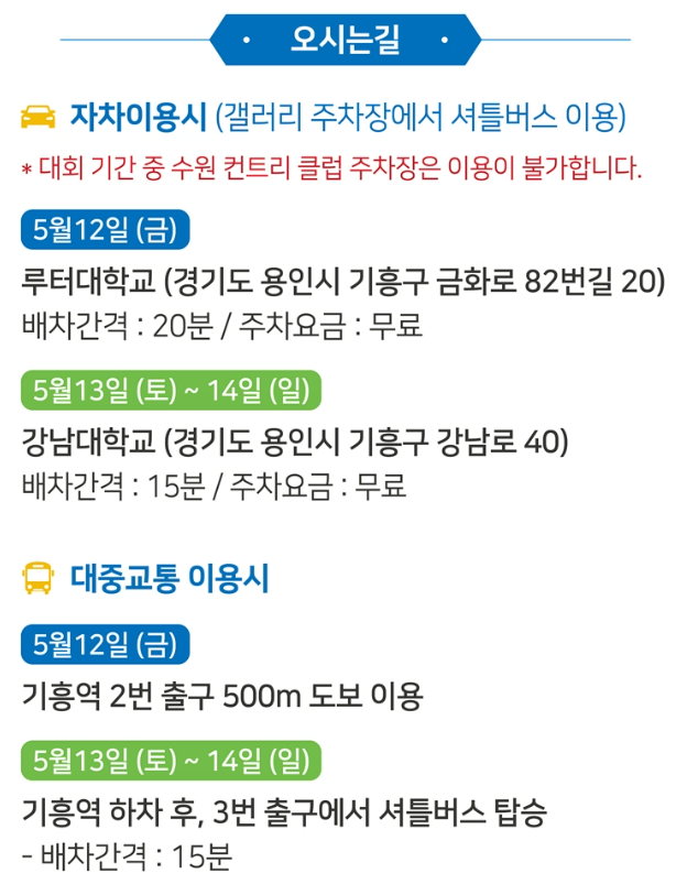 대회 기간 중 수원 컨트리 클럽 주차장은 이용이 불가합니다.