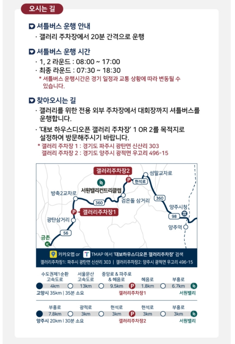 2024 대보 하우스디 오픈 기간 동안에는 서원밸리 CC 내 주차가 불가 합니다.