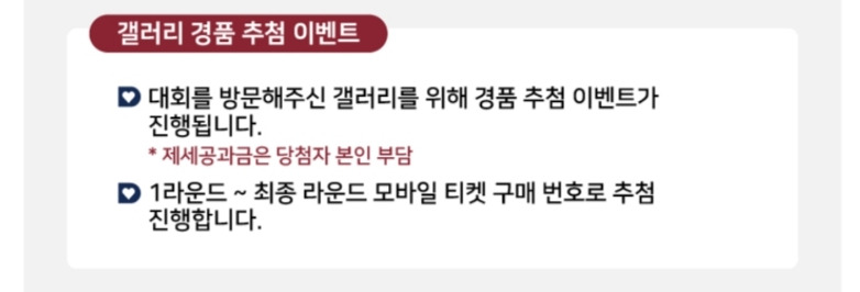 갤러리 경품 추첨 이벤트는 1라운드부터 최종라운드 모바일 티켓 구매번호로 추첨 진행합니다.