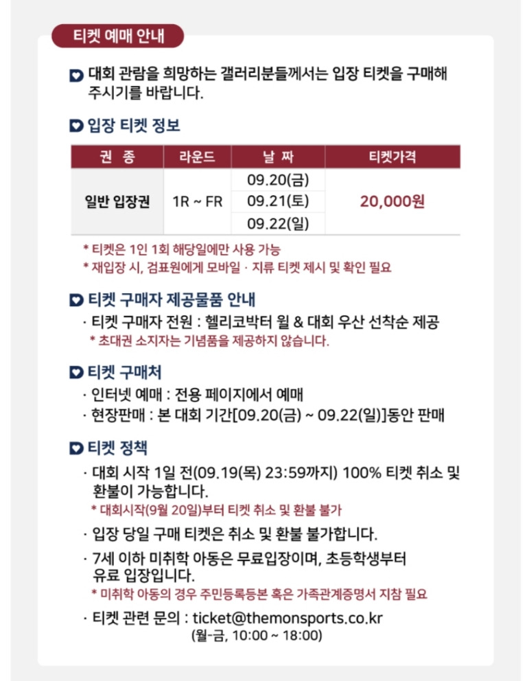 대회일정 : 2024년 9월 20일(금) ~ 22일(일)