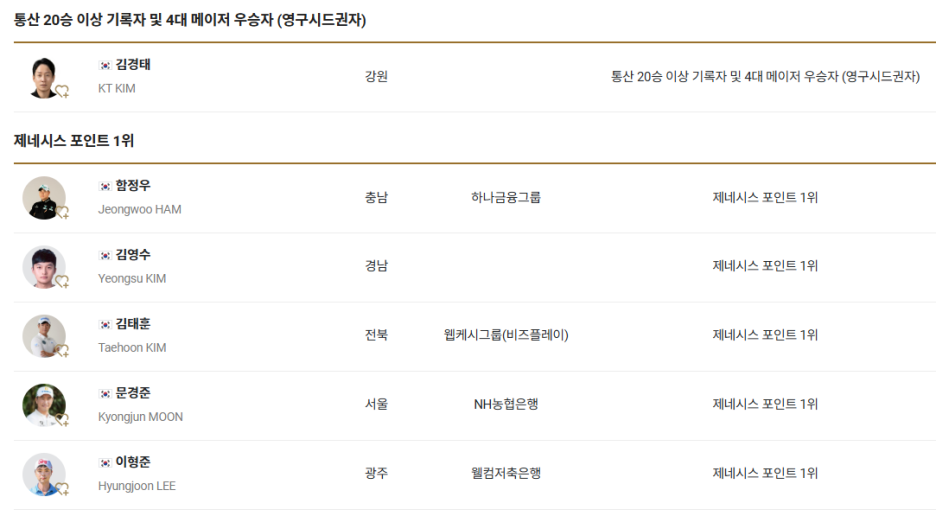 자격조건별로 살펴보면 영구시드권자인 김경태 선수