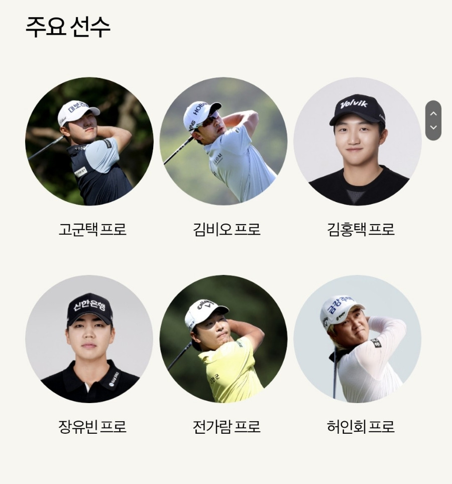 고군택, 김비오, 김홍택, 장유빈, 전가람, 허인회 프로가 참가합니다.
