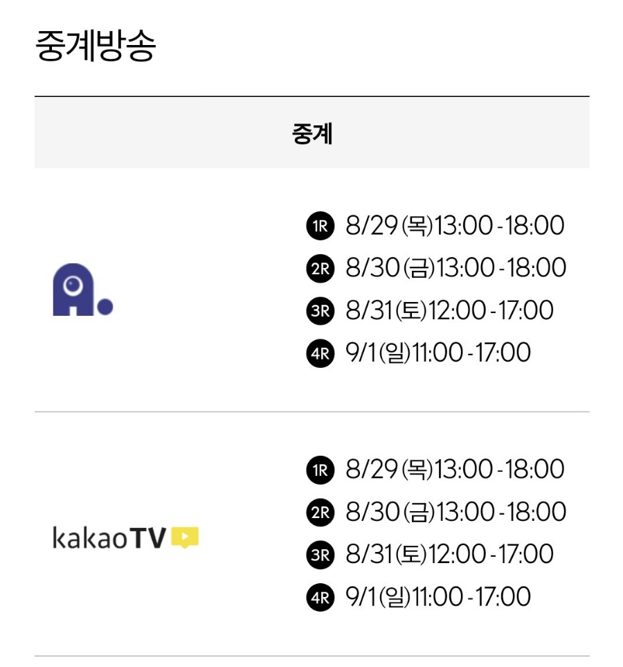 중계방송 일정입니다.