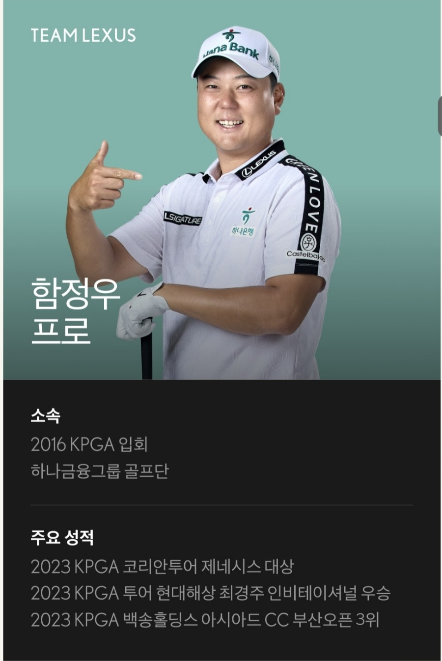 TEAM LEXUS 소속의 박상현 프로와 함정우 프로를 비롯하여