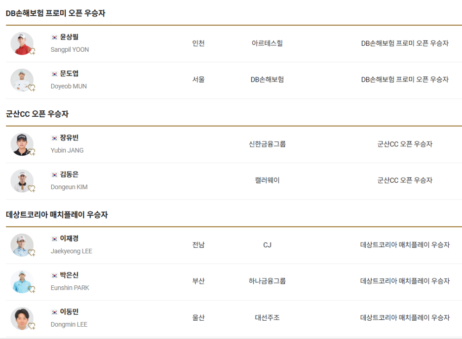 제네시스 포인트 1위 자격으로 함정우, 김영수, 김태훈, 문경준, 이형준