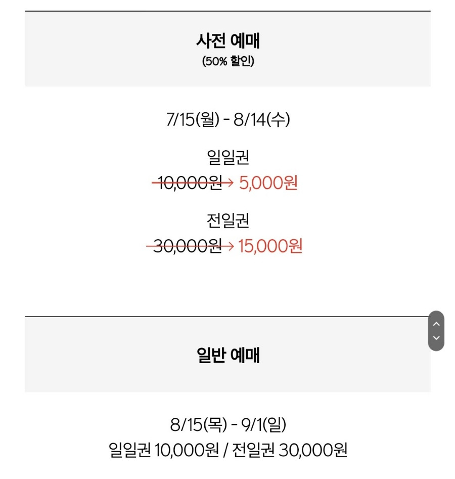사전 예매는 8월 14일(수)까지 가능하며, 사전 예매하면 50% 할인 혜택 가능합니다.