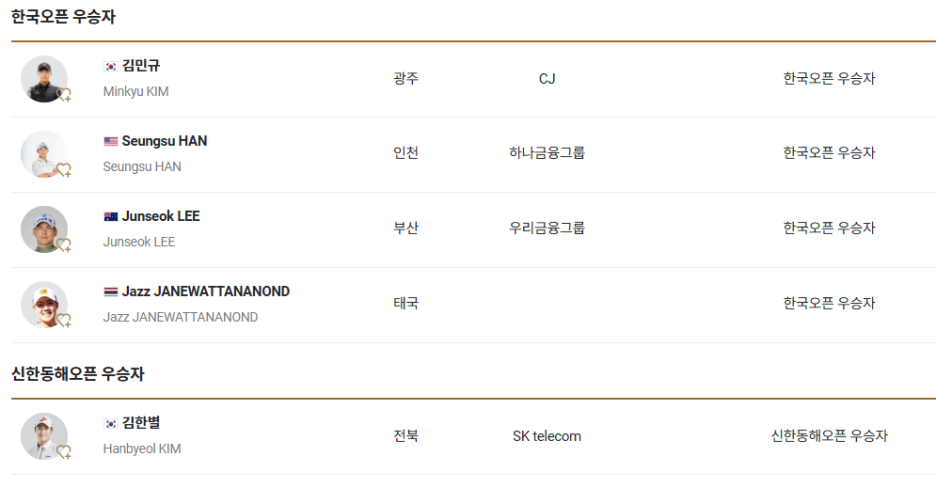 한국오픈 우승자 자격으로