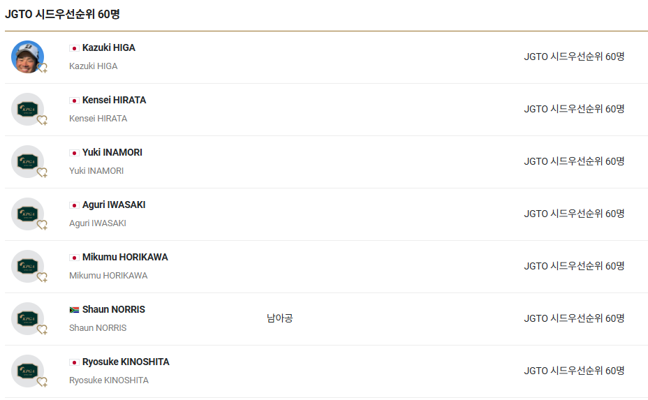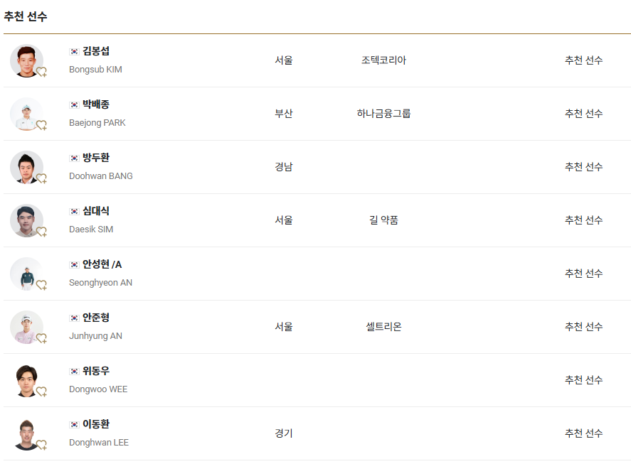 함정우, 김영수, 김태훈, 문경준, 이형준, 이수민, 최승빈, 황중곤, 한승수 선수 등이 참가합니다.