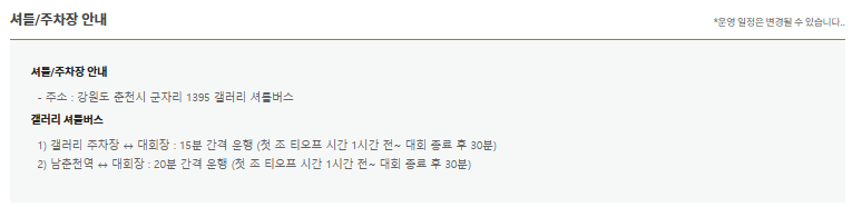 2024 하나은행 인비테이셔널 (Hana Bank Invitational) KPGA 골프 대회 기간 동안에는 남춘천 CC 내 주차가 불가 합니다.