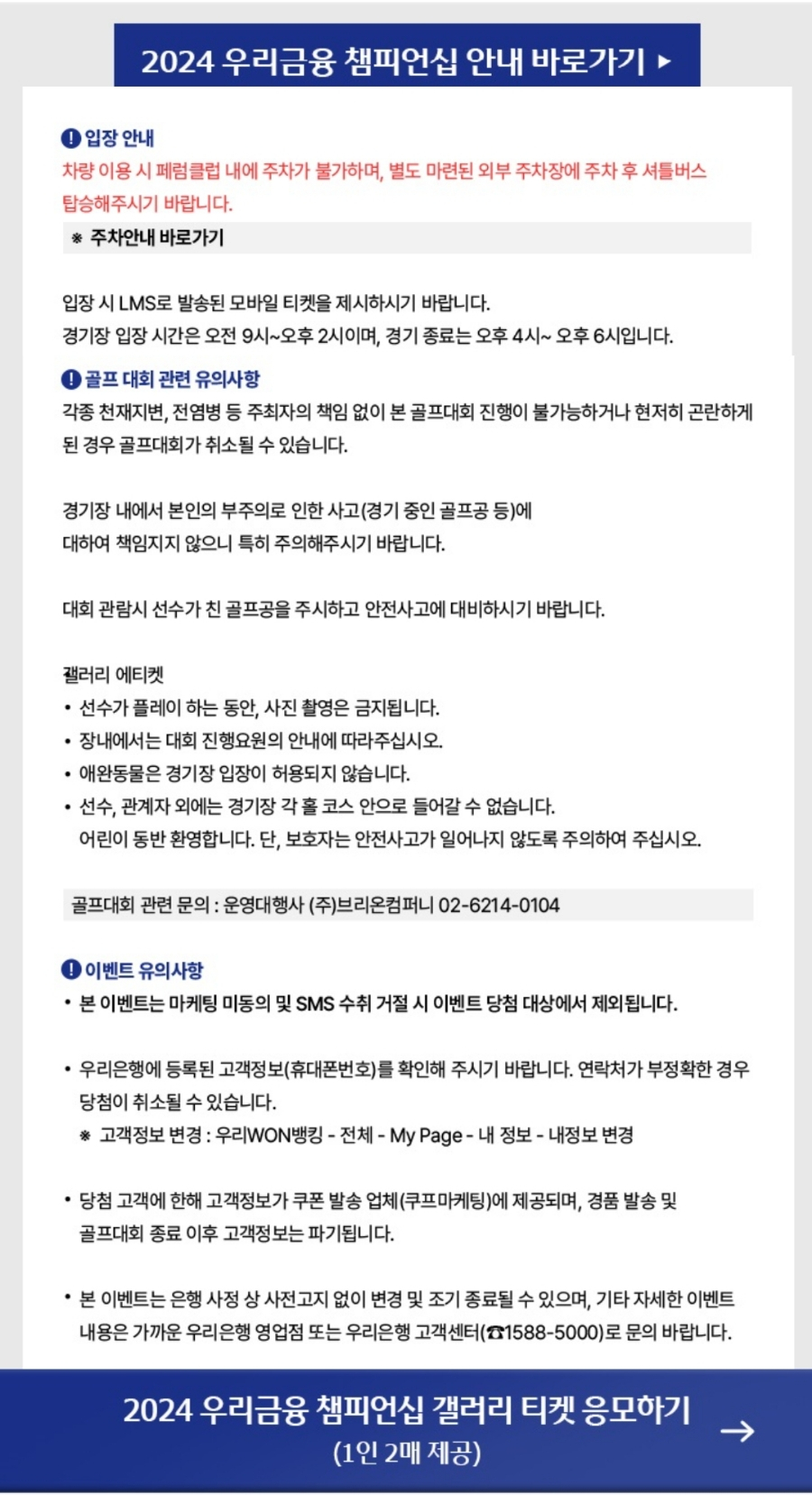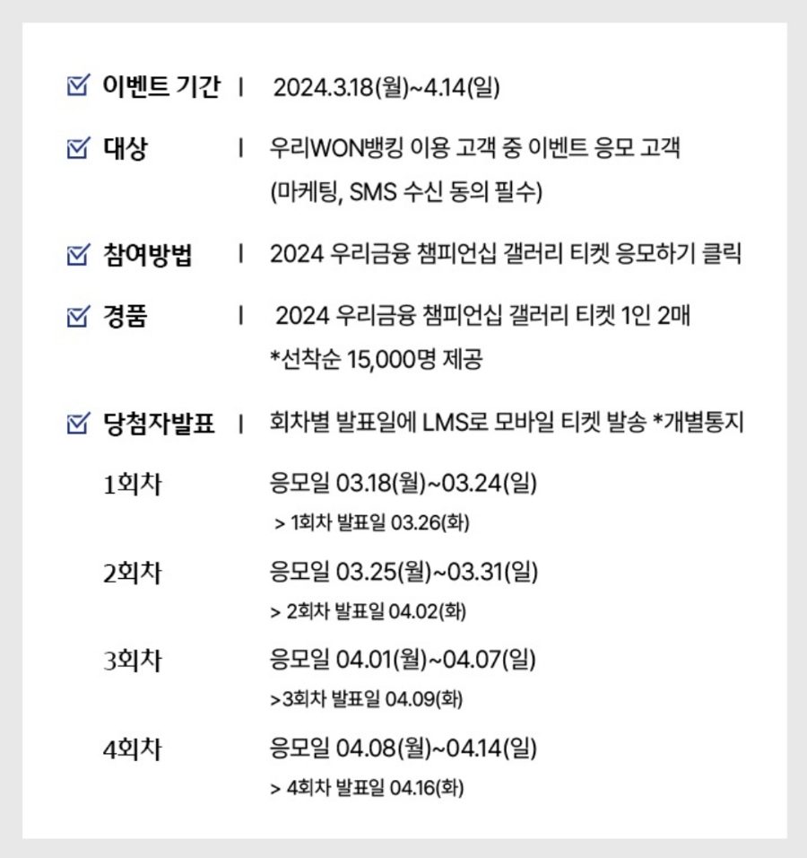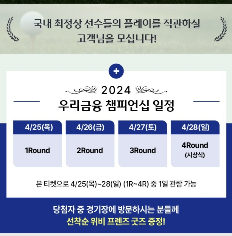 경품 : 2024 우리금융 챔피언십 갤러리 티켓 1인 2매 (선착순 15,000명 제공)