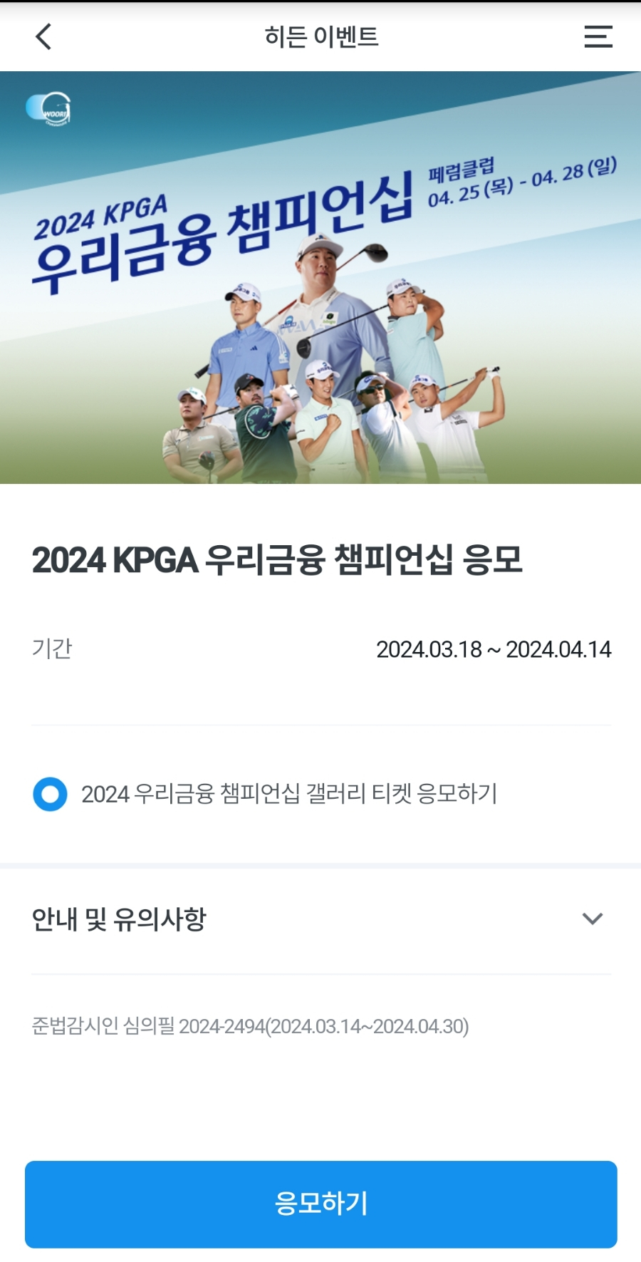 2024 KPGA 우리금융챔피언십 갤러리티켓 응모 이벤트