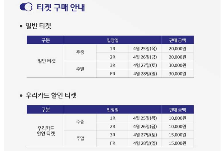 2024 KPGA 파운더스컵 with 한맥CC, 주차, 무료 입장 (0) | 2024.04.19 |