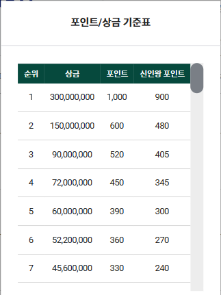 대회상금 : 총 상금 15억원 (우승상금 3억원)