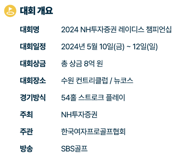 대회명 : 2024 NH투자증권 레이디스 챔피언십