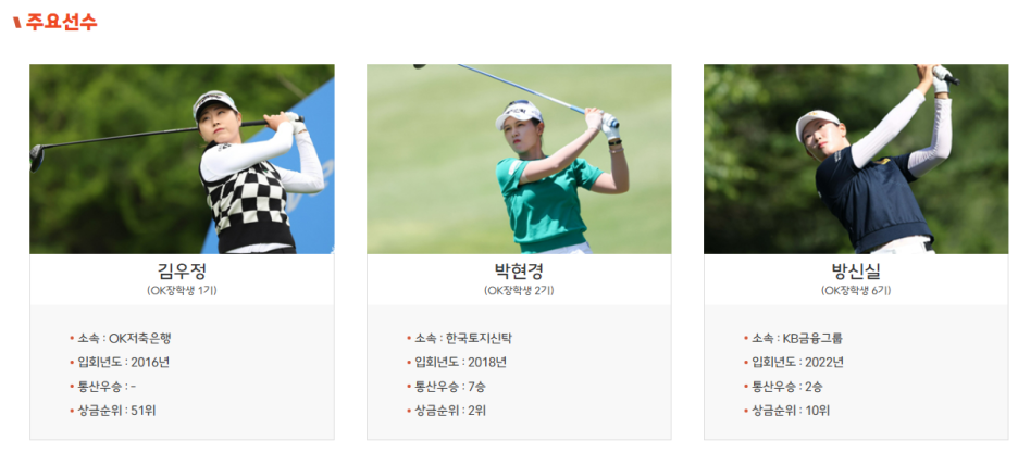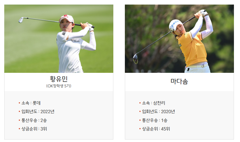 황유민, 그리고 디펜딩챔피언 마다솜 선수가 참가합니다. OK 장학생이 많이 참가합니다.