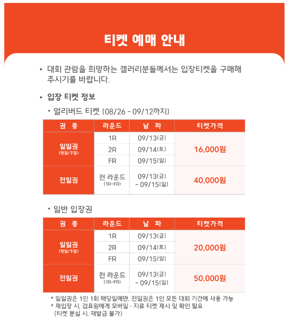 대회일정 : 2024년 9월 13일(금) ~ 15일(일)
