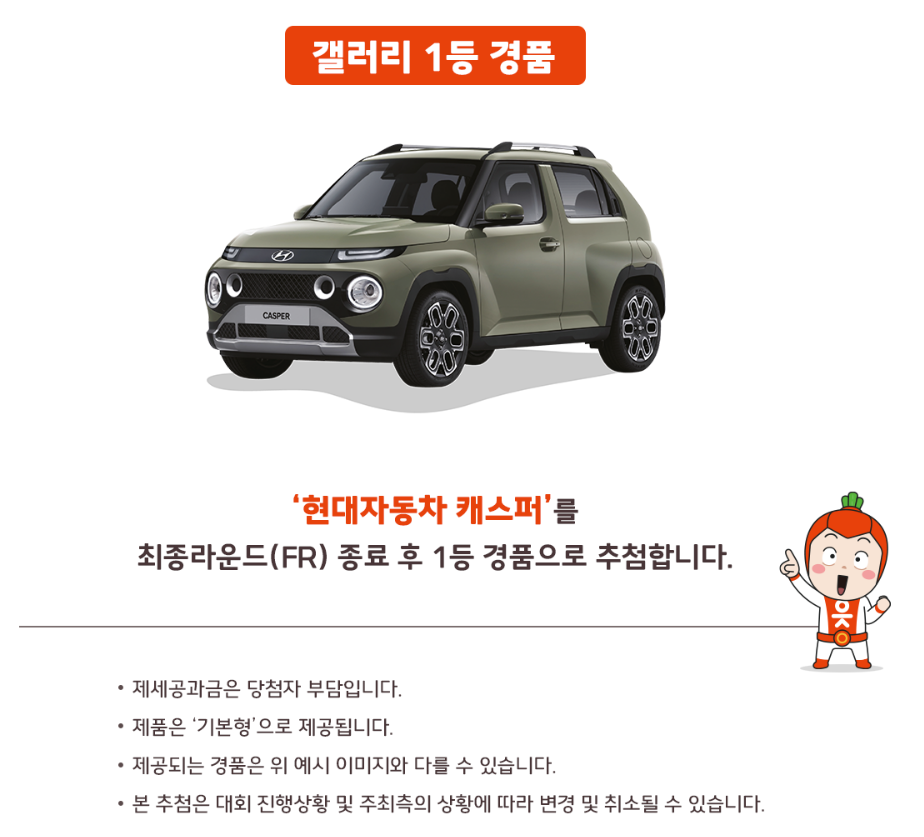갤러리 1등 경품은 현대자동차 캐스퍼 입니다.