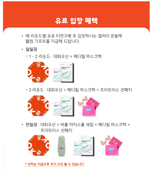 유료 입장 혜택으로 웰컴기프트가 제공됩니다.