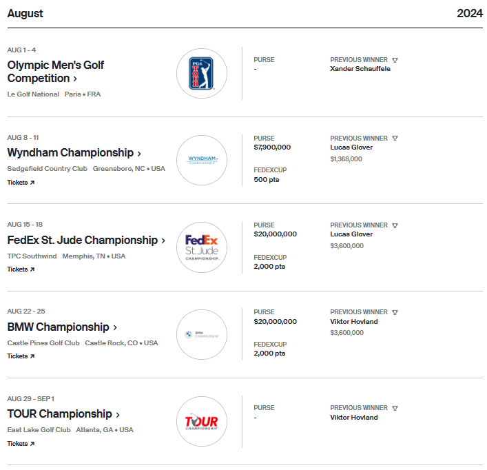 8월 이후 일정은 PEDEXCUP (페덱스컵) 이 시작됩니다.