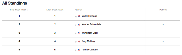 6위부터는 토미 플리트우드, 콜린 모리카와, 스코티 셰플러 등이 위치해 있고,