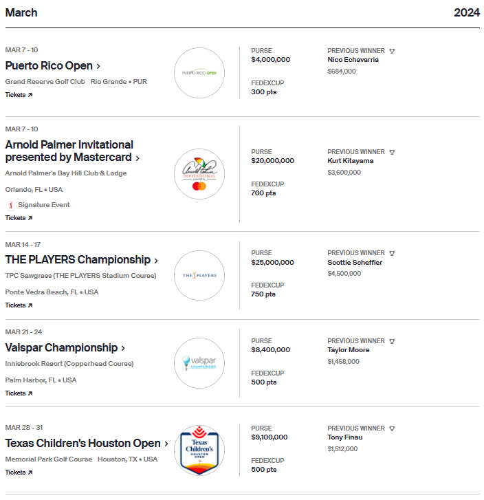 3월 7일 ~ 10일 Arnold Palmer Invitational presented by Mastercard