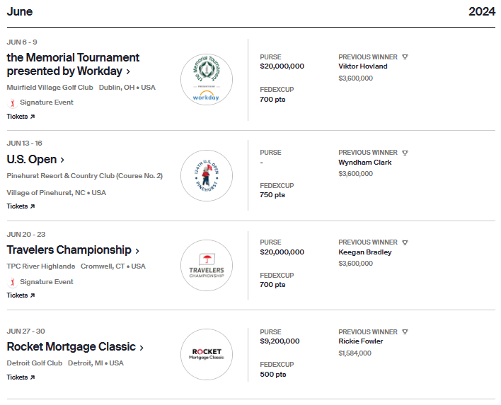 Pinehurst Resort & Country Club (Course No. 2) / Village of Pinehurst, NC, USA / 총상금 미정 (전년도 우승자 : Wyndham Clark / $3,600,000)