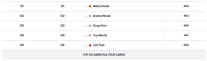 그 외의 선수들 중 125위까지는 다음연도 PGA 투어 참가권이 부여 됩니다.