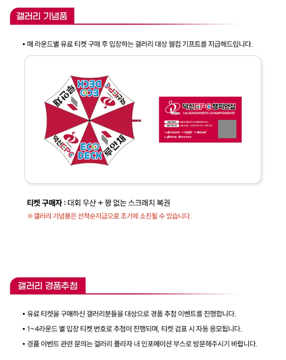 티켓 구매자 전원에게는 대회 우산과 꽝 없는 스크래치 복권을 웰컴 기프트로 지급합니다.