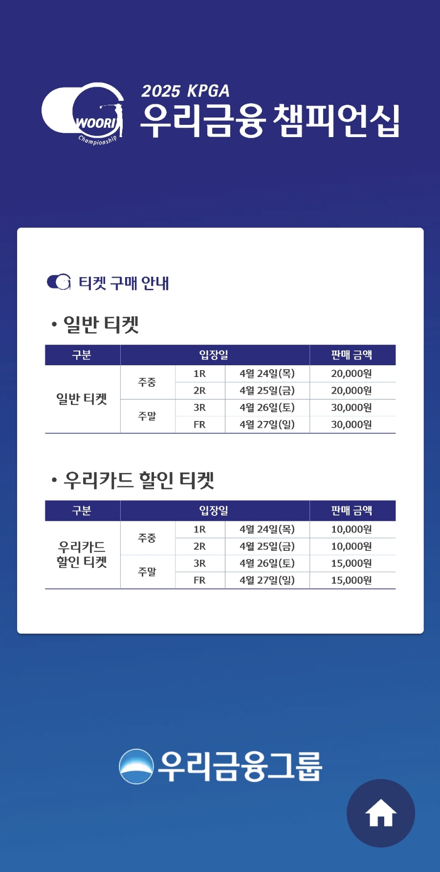 2025 KPGA 우리금융 챔피언십 골프 대회 in 서원밸리 CC, 우리은행 무료 갤러리티켓