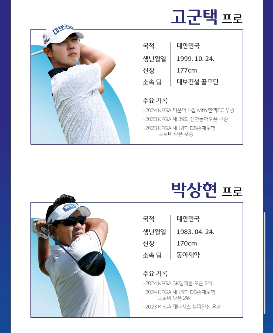 주요 참가 선수로는 PGA에서 활약 중이며, 지난 2년간 KPGA 우리금융 챔피언십 우승자인 디펜딩 챔피언 임성재 선수를 비롯해서 고군택, 김홍택, 박상현, 조민규, 이정환, 황중곤, 이수민, 박준홍, 조우영, 문동현 프로가 참가합니다.