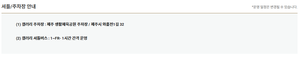 갤러리 주차장은 제주 생활체육공원 주차장 / 제주시 와흘전1길 32입니다.
