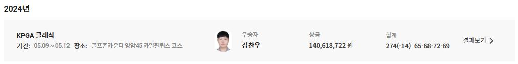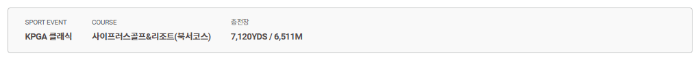 총상금 7억 원, 우승상금 1.4억 원에 달하는 2025 KPGA CLASSIC 클래식 골프 대회가 제주도에 위치한 사이프러스 골프&리조트에서 2025년 5월 8일(목)부터 11일(일)까지 개최됩니다.