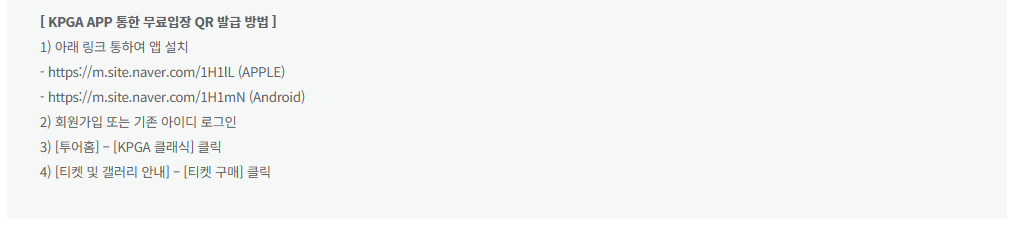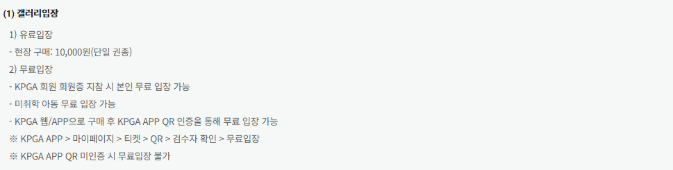 KPGA 웹/APP으로 구매 후 KGPA APP QR 인증을 통해 무료 입장 가능