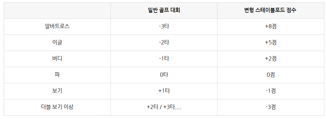 일반 골프 대회 스트로크 방식에서는 버디 1개, 보기 1개면 0타이지만, 변형 스테이블포드 방식은 +1점입니다.