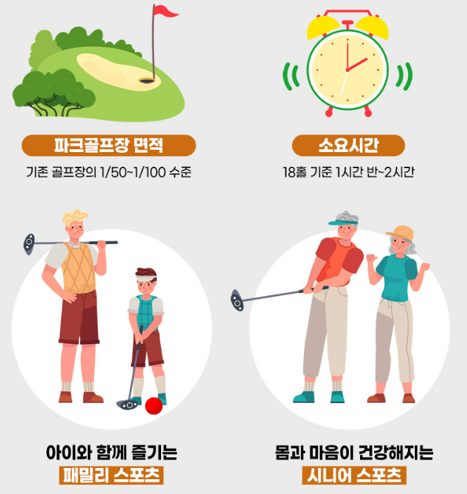 엄청 큰 면적이 필요한 골프장과 달리 도시공원이나 체육공원에 위치해 인접성이 뛰어나다는장점이 있습니다.