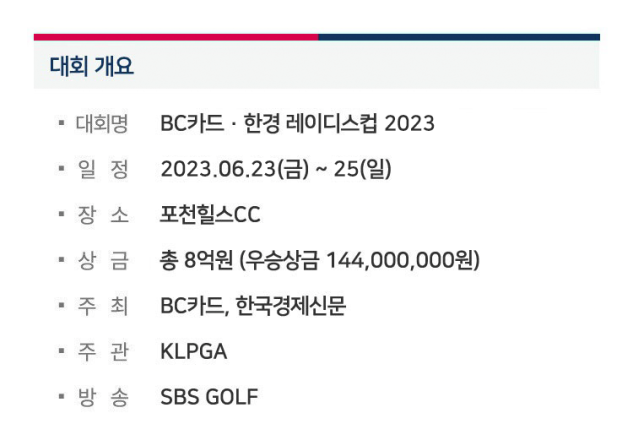 대회명 : BC카드 한경 레이디스컵 2023