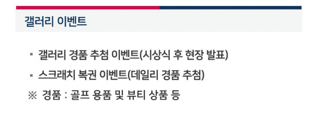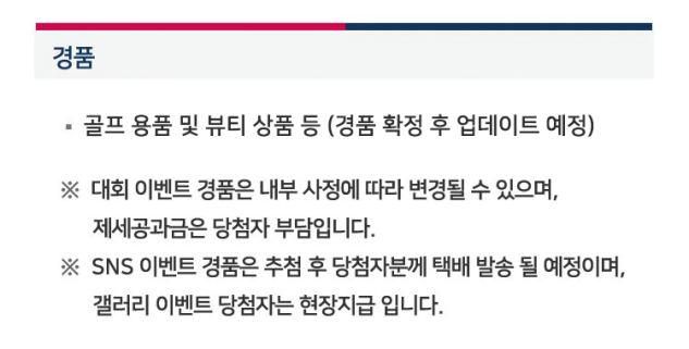 경품은 골프 용품 및 뷰티 상품 이나, 경품 확정 후 업데이트 예정입니다.