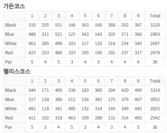 가든코스와 팰리스코스에서 진행되며, 예선 6,630 야드, 본선 6,528 야드 입니다.