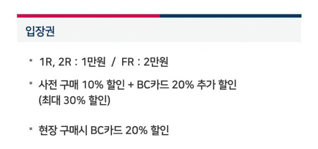 입장권은 1R, 2R와 FR 금액이 상이합니다.