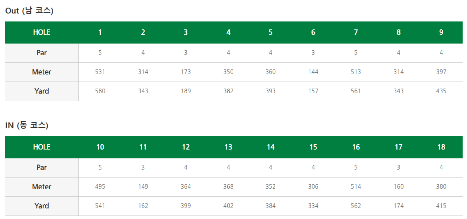 대회장소 : 레인보우힐스 / 남(OUT), 동(IN)