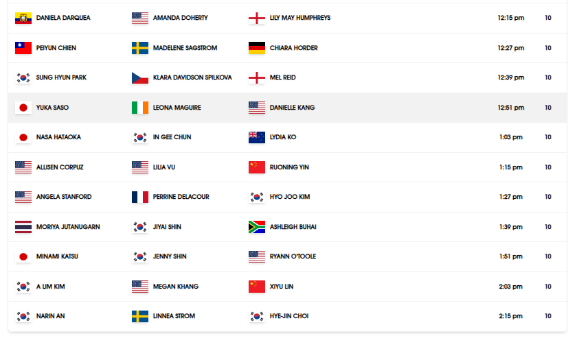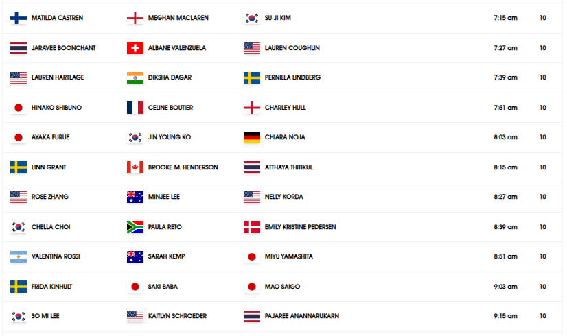 마지막으로 오후에 10번홀부터 시작하는 선수는 박성현, 전인지, 김효주, 신지애, 신제니, 김아림, 안나린, 최혜진 선수 등 8명의 선수가 포함되어 있습니다.