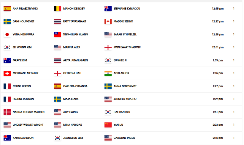12시 15분 부터 시작하는 오후 조로 1번에서 시작하는 선수는 김세영, 지은희, 유해란, 이정은6 선수 등 4명의 선수가 참가합니다.