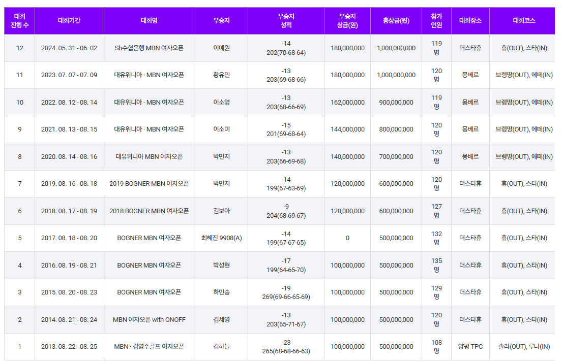 Sh수협은행 MBN 여자오픈은 올해로 13회째를 맞는 대회 입니다.