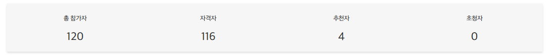 이번 대회에는 추천자 4명 포함하여 총 120명의 선수가 참가합니다.